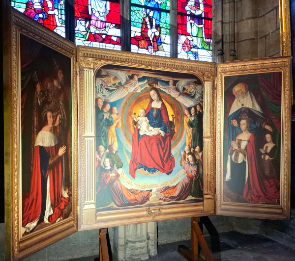 La rénovation de ce chef-d’œuvre absolu de la peinture française à l'aube du XVI ème siècle vient d'être terminée. Il est exposé actuellement au Louvre à Paris et rejoindra Moulins en 2027. En cette attente, une reproduction est exposée.