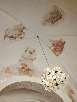 Récemment, une importante rénovation a mis à jour des fresques superbes sur l’arc triomphal et à la croisée d’ogives entre le chœur, les deux transepts et la nef. Elles ont été restaurées selon les préceptes de la charte de Venise :ne pas réinventer ce que l’on ne voit plus. Ce qui reste, laisse l’imagination le suggérer.