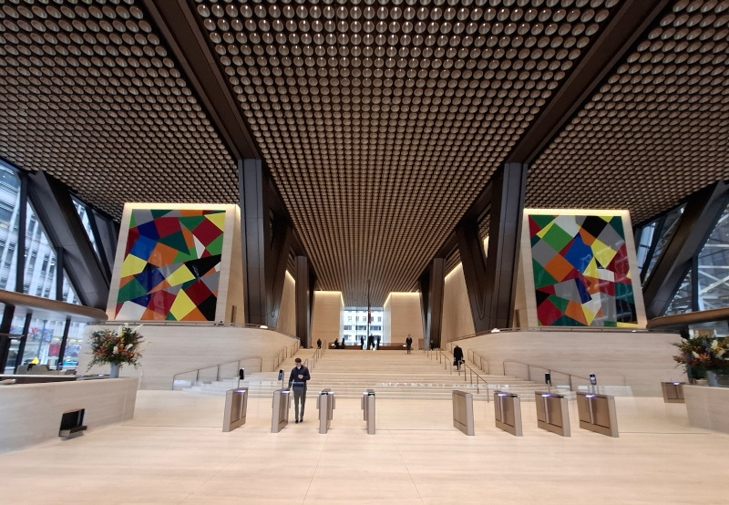 Ce bâtiment à l'architecture originale signée du cabinet Forster + Partners est construit au-dessus des rails de du Long Island Railroad. On dit – à moins que cela ne soit une fake news - que des piliers de consolidation furent glissés dans les espaces étroits séparant les voies.